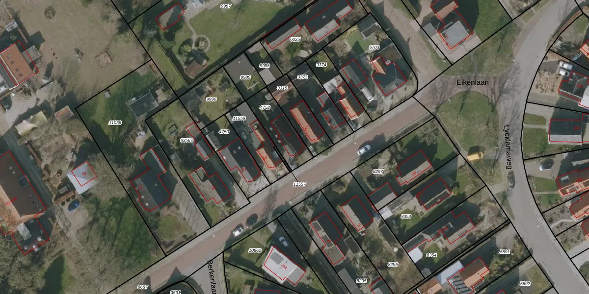 Eikenlaan 65 is gelegen op kadastraal perceel WVG00D4752. Deze kadastrale aanduiding is uniek en wordt gebruikt door het Kadaster om eigendomsrechten en andere zakelijke rechten vast te leggen. Het perceel maakt onderdeel uit van de kadastrale gemeente Wolvega.