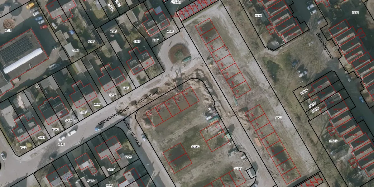 Het perceel waarop Emmastraat 15 staat heeft een oppervlakte van 2586 m². Dit is een zeer groot perceel. De perceeloppervlakte wordt geregistreerd door het Kadaster. Gedetailleerde informatie over de maten van dit perceel kunt u vinden in het rapport Kadastrale kaart met maatvoering van Emmastraat 15.