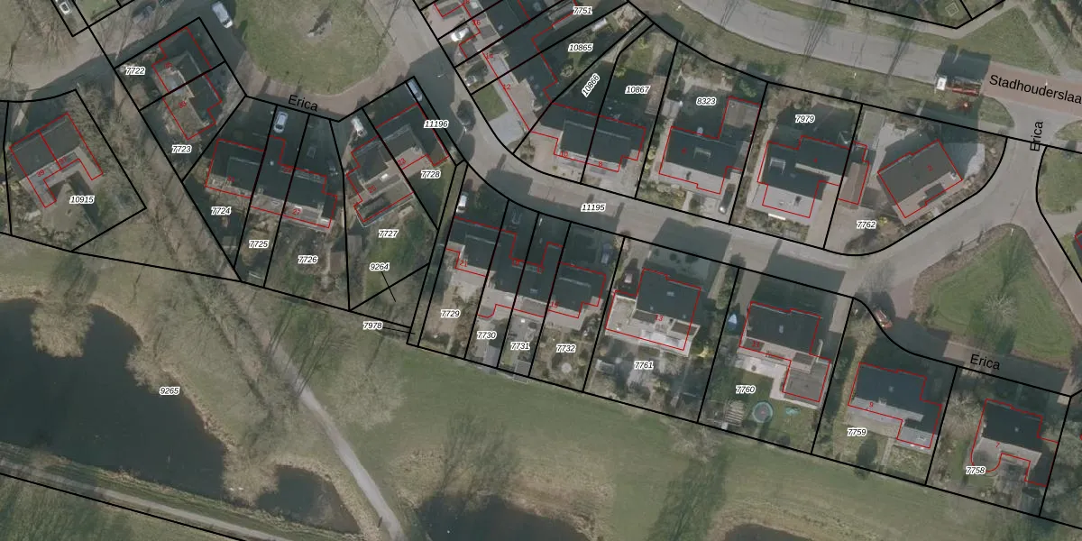 Het perceel waarop Erica 17 staat heeft een oppervlakte van 182 m². Dit is een middelgroot perceel. De perceeloppervlakte wordt geregistreerd door het Kadaster. Gedetailleerde informatie over de maten van dit perceel kunt u vinden in het rapport Kadastrale kaart met maatvoering van Erica 17.