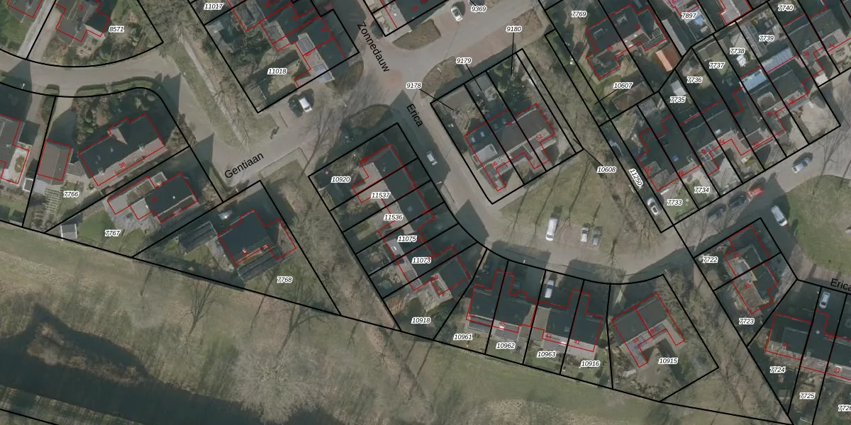 Het perceel waarop Erica 55 staat heeft een oppervlakte van 146 m². Dit is een middelgroot perceel. De perceeloppervlakte wordt geregistreerd door het Kadaster. Gedetailleerde informatie over de maten van dit perceel kunt u vinden in het rapport Kadastrale kaart met maatvoering van Erica 55.