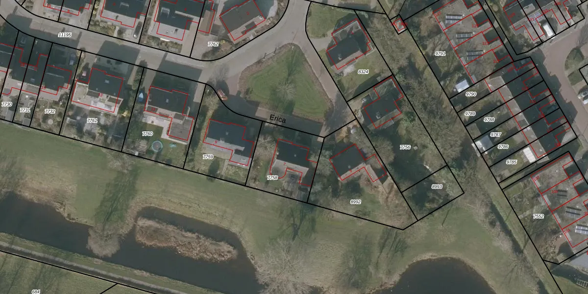 Het perceel waarop Erica 7 staat heeft een oppervlakte van 500 m². Dit is een groot perceel. De perceeloppervlakte wordt geregistreerd door het Kadaster. Gedetailleerde informatie over de maten van dit perceel kunt u vinden in het rapport Kadastrale kaart met maatvoering van Erica 7.