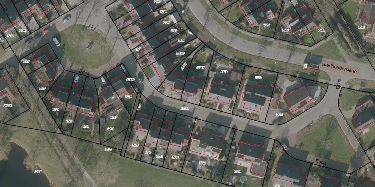 Het perceel waarop Erica 8 staat heeft een oppervlakte van 310 m². Dit is een groot perceel. De perceeloppervlakte wordt geregistreerd door het Kadaster. Gedetailleerde informatie over de maten van dit perceel kunt u vinden in het rapport Kadastrale kaart met maatvoering van Erica 8.