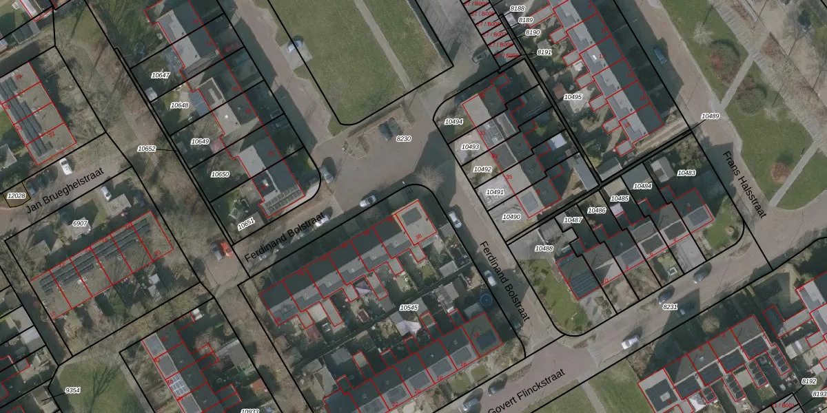 Het perceel waarop Ferdinand Bolstraat 38 staat heeft een oppervlakte van 2630 m². Dit is een zeer groot perceel. De perceeloppervlakte wordt geregistreerd door het Kadaster. Gedetailleerde informatie over de maten van dit perceel kunt u vinden in het rapport Kadastrale kaart met maatvoering van Ferdinand Bolstraat 38.