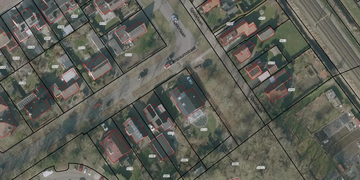 Het perceel waarop Geraniumstraat 14 staat heeft een oppervlakte van 1018 m². Dit is een zeer groot perceel. De perceeloppervlakte wordt geregistreerd door het Kadaster. Gedetailleerde informatie over de maten van dit perceel kunt u vinden in het rapport Kadastrale kaart met maatvoering van Geraniumstraat 14.