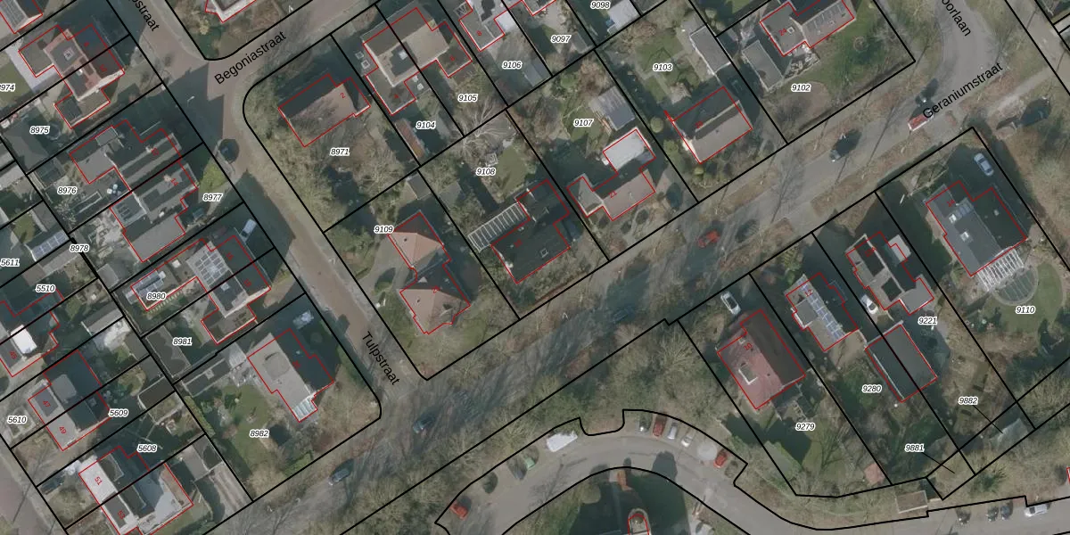 Geraniumstraat 19 is gelegen op kadastraal perceel WVG00D9108. Deze kadastrale aanduiding is uniek en wordt gebruikt door het Kadaster om eigendomsrechten en andere zakelijke rechten vast te leggen. Het perceel maakt onderdeel uit van de kadastrale gemeente Wolvega.