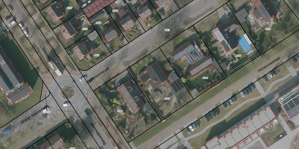 Geraniumstraat 4 is gelegen op kadastraal perceel WVG00D5603. Deze kadastrale aanduiding is uniek en wordt gebruikt door het Kadaster om eigendomsrechten en andere zakelijke rechten vast te leggen. Het perceel maakt onderdeel uit van de kadastrale gemeente Wolvega.