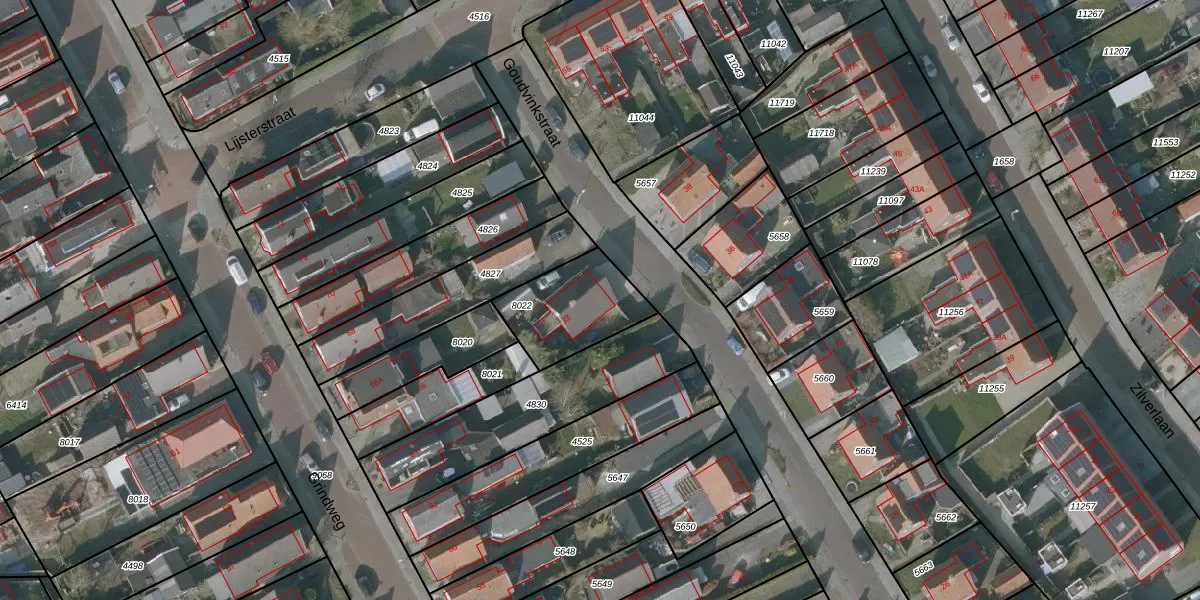 Gebruik de zoekbalk of klik op een perceel voor informatie over de adressen binnen dit perceel.