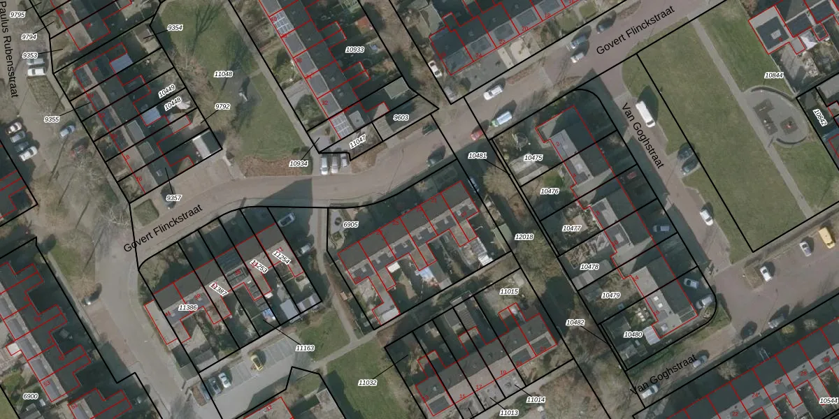 Het perceel waarop Govert Flinckstraat 23 staat heeft een oppervlakte van 994 m². Dit is een groot perceel. De perceeloppervlakte wordt geregistreerd door het Kadaster. Gedetailleerde informatie over de maten van dit perceel kunt u vinden in het rapport Kadastrale kaart met maatvoering van Govert Flinckstraat 23.