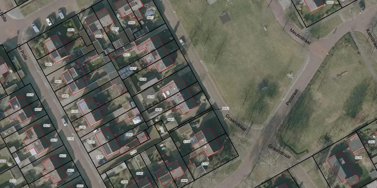 Graanstraat 13 is gelegen op kadastraal perceel WVG00D6640. Deze kadastrale aanduiding is uniek en wordt gebruikt door het Kadaster om eigendomsrechten en andere zakelijke rechten vast te leggen. Het perceel maakt onderdeel uit van de kadastrale gemeente Wolvega.