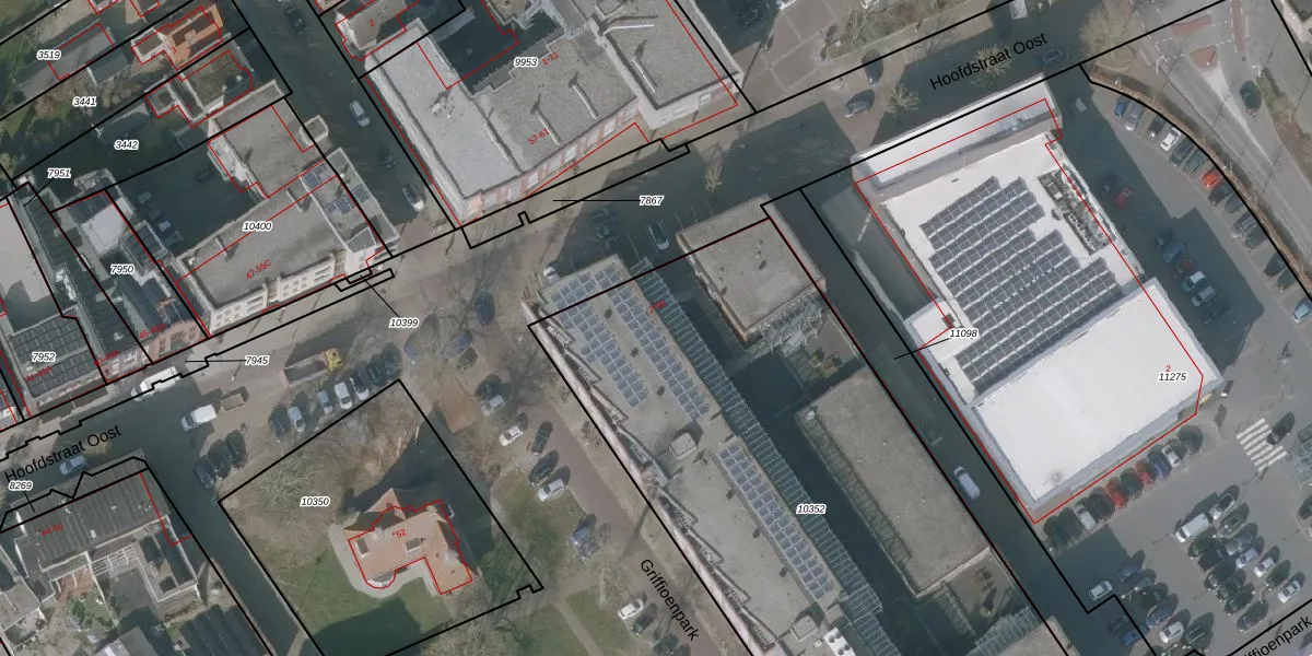Het perceel waarop Griffioenpark 30 staat heeft een oppervlakte van 3749 m². Dit is een zeer groot perceel. De perceeloppervlakte wordt geregistreerd door het Kadaster. Gedetailleerde informatie over de maten van dit perceel kunt u vinden in het rapport Kadastrale kaart met maatvoering van Griffioenpark 30.