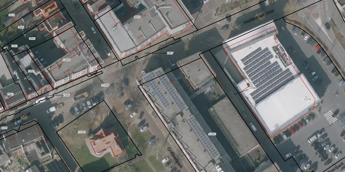 Het perceel waarop Griffioenpark 32 staat heeft een oppervlakte van 3749 m². Dit is een zeer groot perceel. De perceeloppervlakte wordt geregistreerd door het Kadaster. Gedetailleerde informatie over de maten van dit perceel kunt u vinden in het rapport Kadastrale kaart met maatvoering van Griffioenpark 32.