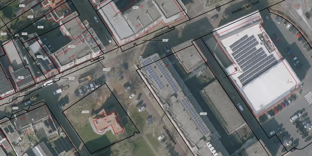 Het perceel waarop Griffioenpark 34 staat heeft een oppervlakte van 3749 m². Dit is een zeer groot perceel. De perceeloppervlakte wordt geregistreerd door het Kadaster. Gedetailleerde informatie over de maten van dit perceel kunt u vinden in het rapport Kadastrale kaart met maatvoering van Griffioenpark 34.