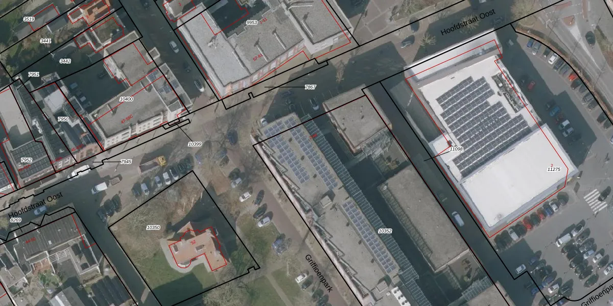 Griffioenpark 50 is gelegen op kadastraal perceel WVG00D10352. Deze kadastrale aanduiding is uniek en wordt gebruikt door het Kadaster om eigendomsrechten en andere zakelijke rechten vast te leggen. Het perceel maakt onderdeel uit van de kadastrale gemeente Wolvega.