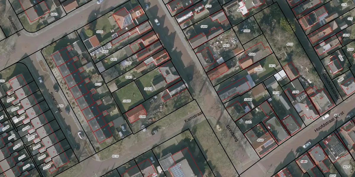Gebruik de zoekbalk of klik op een perceel voor informatie over de adressen binnen dit perceel.