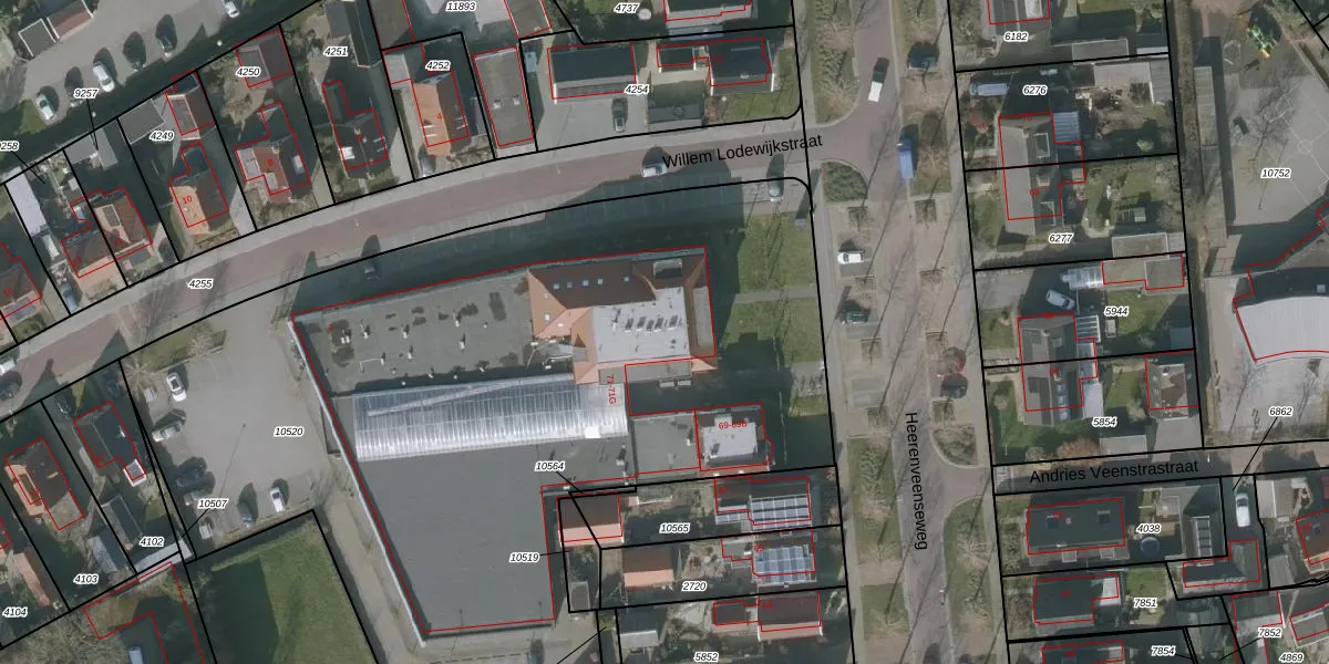 Het perceel waarop Heerenveenseweg 71-E staat heeft een oppervlakte van 5285 m². Dit is een zeer groot perceel. De perceeloppervlakte wordt geregistreerd door het Kadaster. Gedetailleerde informatie over de maten van dit perceel kunt u vinden in het rapport Kadastrale kaart met maatvoering van Heerenveenseweg 71-E.