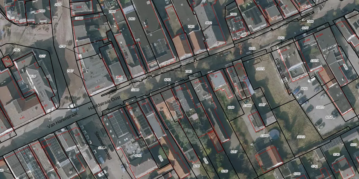 Hoofdstraat Oost 12 is gelegen op kadastraal perceel WVG00D8246. Deze kadastrale aanduiding is uniek en wordt gebruikt door het Kadaster om eigendomsrechten en andere zakelijke rechten vast te leggen. Het perceel maakt onderdeel uit van de kadastrale gemeente Wolvega.