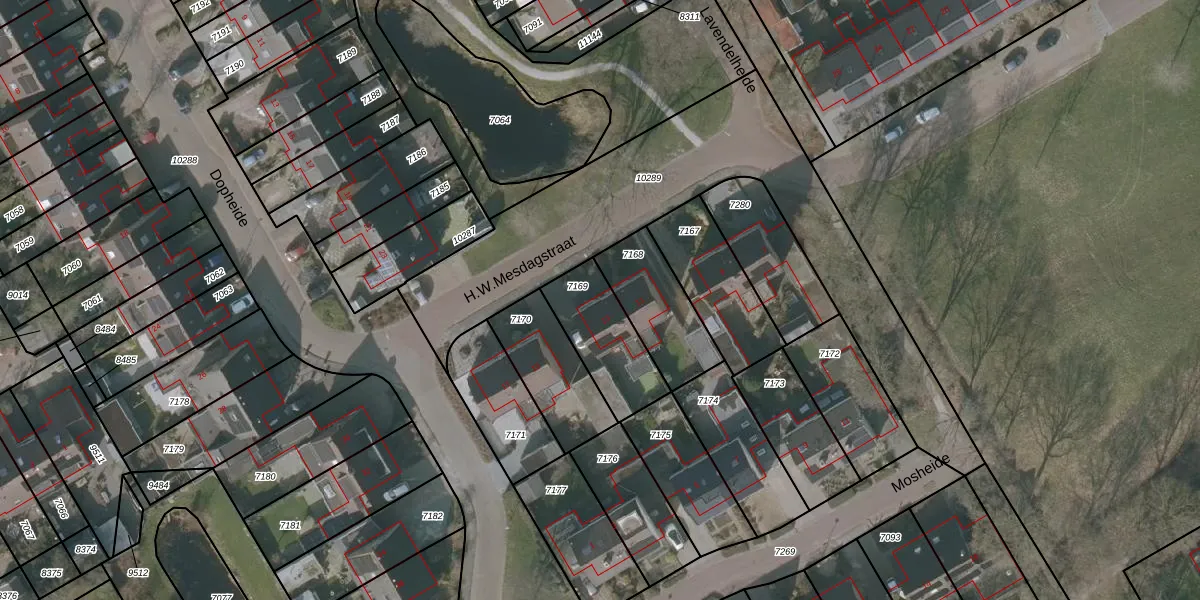 Gebruik de zoekbalk of klik op een perceel voor informatie over de adressen binnen dit perceel.