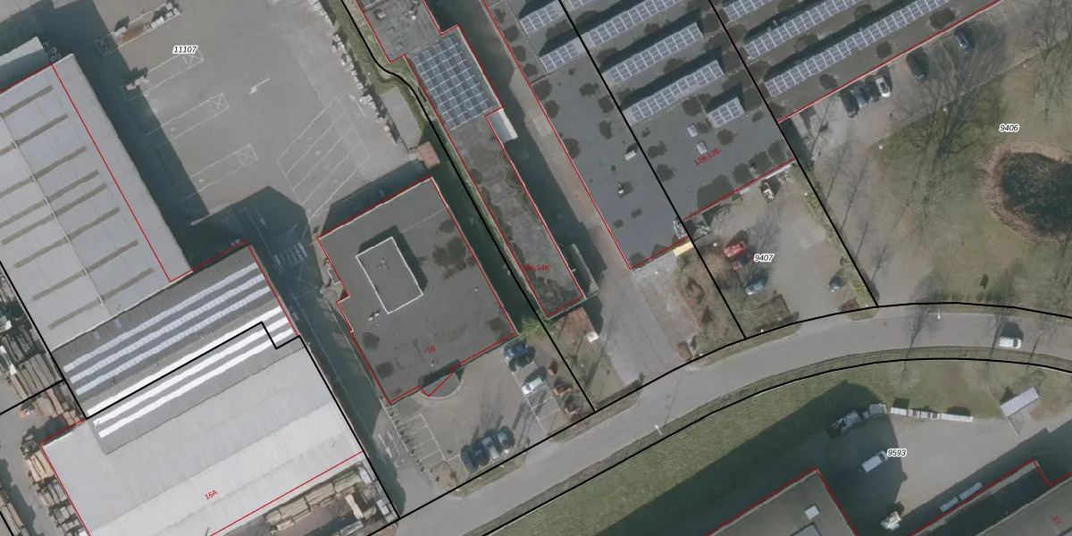 Het perceel waarop Industrieweg 14-A staat heeft een oppervlakte van 6300 m². Dit is een zeer groot perceel. De perceeloppervlakte wordt geregistreerd door het Kadaster. Gedetailleerde informatie over de maten van dit perceel kunt u vinden in het rapport Kadastrale kaart met maatvoering van Industrieweg 14-A.