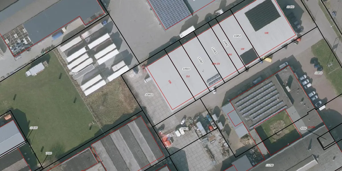 Industrieweg 15-K is gelegen op kadastraal perceel WVG00D10453. Deze kadastrale aanduiding is uniek en wordt gebruikt door het Kadaster om eigendomsrechten en andere zakelijke rechten vast te leggen. Het perceel maakt onderdeel uit van de kadastrale gemeente Wolvega.