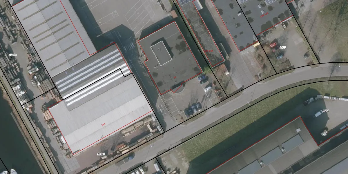 Het perceel waarop Industrieweg 16 staat heeft een oppervlakte van 1,1 ha. Dit is een zeer groot perceel. De perceeloppervlakte wordt geregistreerd door het Kadaster. Gedetailleerde informatie over de maten van dit perceel kunt u vinden in het rapport Kadastrale kaart met maatvoering van Industrieweg 16.