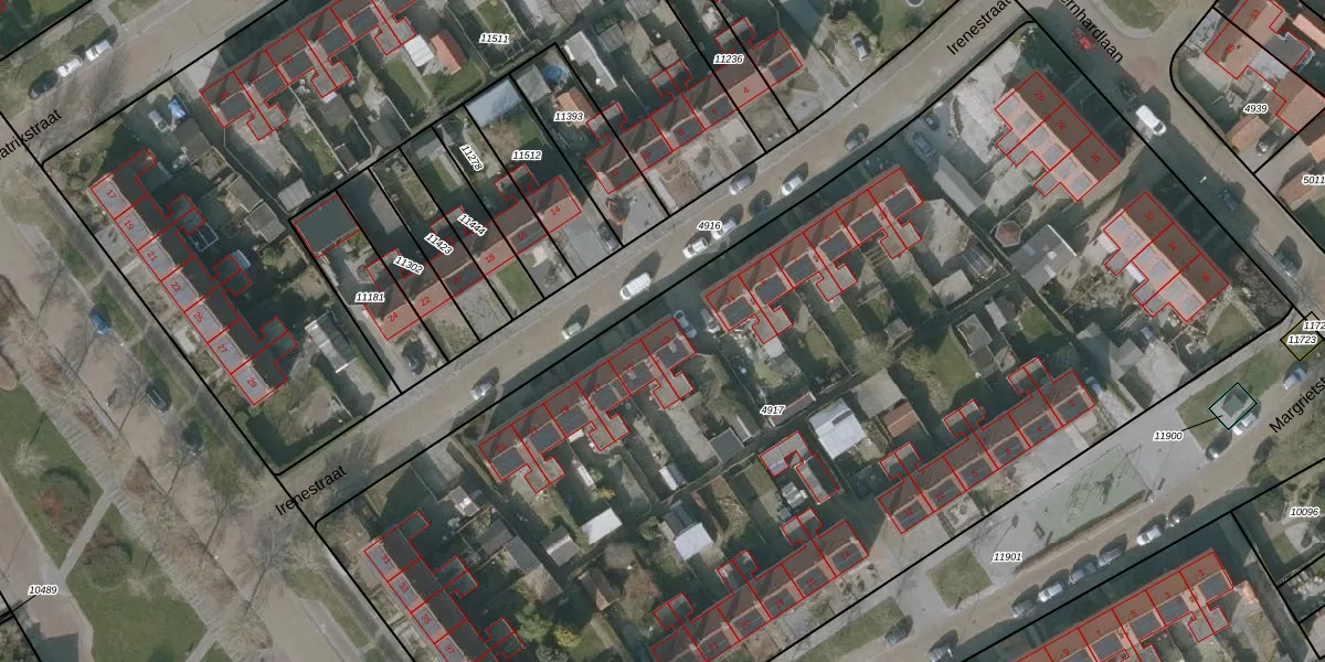 Irenestraat 13 is gelegen op kadastraal perceel WVG00D4917. Deze kadastrale aanduiding is uniek en wordt gebruikt door het Kadaster om eigendomsrechten en andere zakelijke rechten vast te leggen. Het perceel maakt onderdeel uit van de kadastrale gemeente Wolvega.
