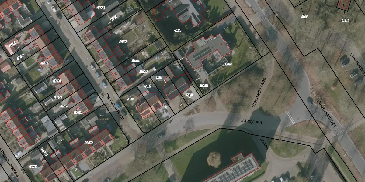 Gebruik de zoekbalk of klik op een perceel voor informatie over de adressen binnen dit perceel.