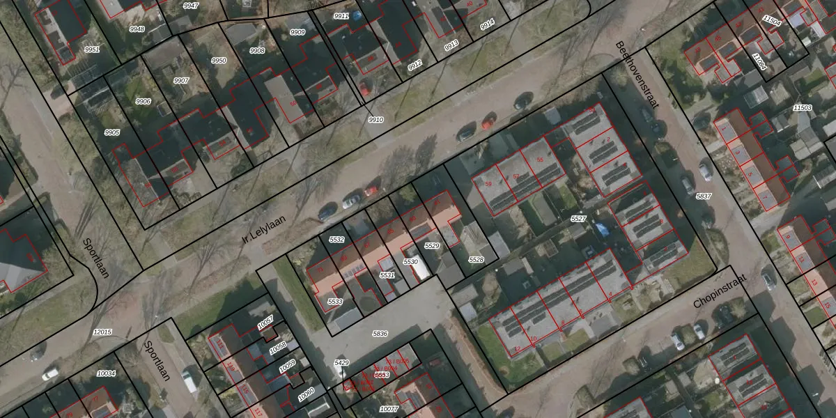 Gebruik de zoekbalk of klik op een perceel voor informatie over de adressen binnen dit perceel.