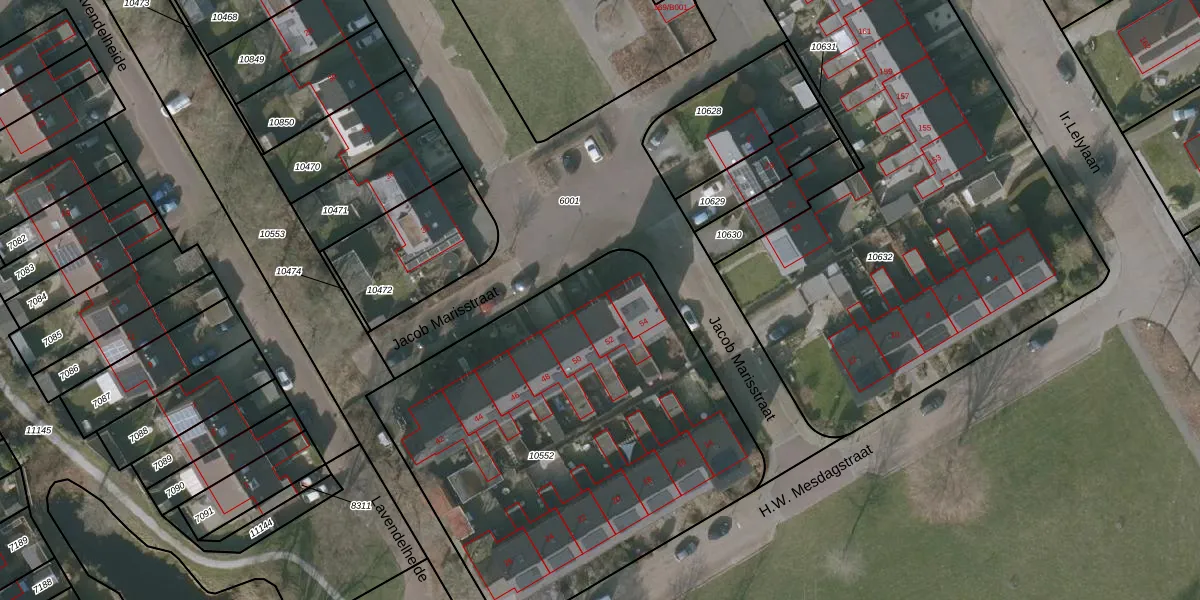 Het perceel waarop Jacob Marisstraat 52 staat heeft een oppervlakte van 2390 m². Dit is een zeer groot perceel. De perceeloppervlakte wordt geregistreerd door het Kadaster. Gedetailleerde informatie over de maten van dit perceel kunt u vinden in het rapport Kadastrale kaart met maatvoering van Jacob Marisstraat 52.