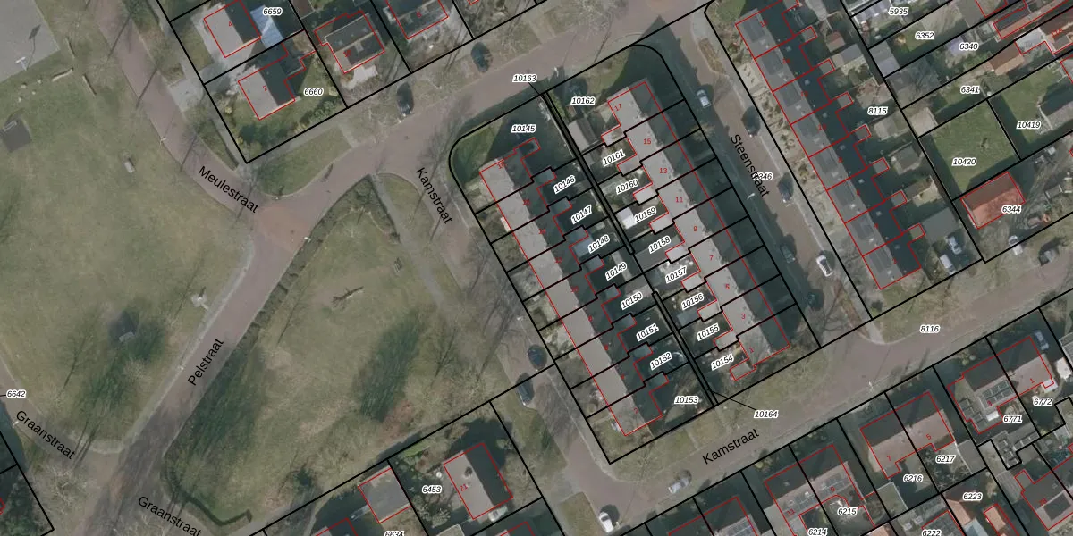 Gebruik de zoekbalk of klik op een perceel voor informatie over de adressen binnen dit perceel.