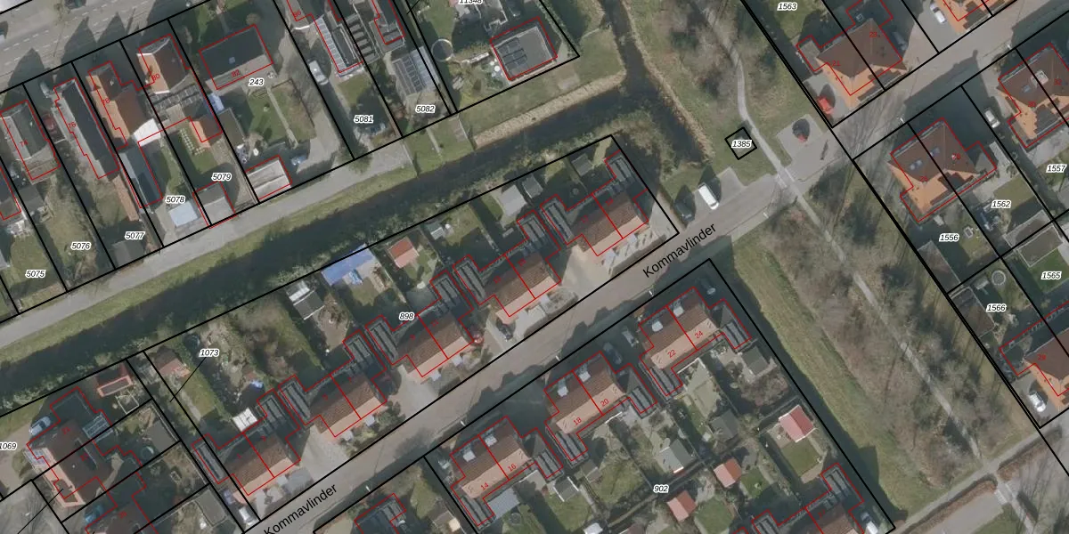 Het perceel waarop Kommavlinder 15 staat heeft een oppervlakte van 2903 m². Dit is een zeer groot perceel. De perceeloppervlakte wordt geregistreerd door het Kadaster. Gedetailleerde informatie over de maten van dit perceel kunt u vinden in het rapport Kadastrale kaart met maatvoering van Kommavlinder 15.