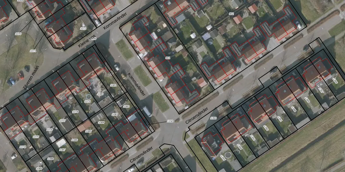 Het perceel waarop Kommavlinder 4 staat heeft een oppervlakte van 1529 m². Dit is een zeer groot perceel. De perceeloppervlakte wordt geregistreerd door het Kadaster. Gedetailleerde informatie over de maten van dit perceel kunt u vinden in het rapport Kadastrale kaart met maatvoering van Kommavlinder 4.