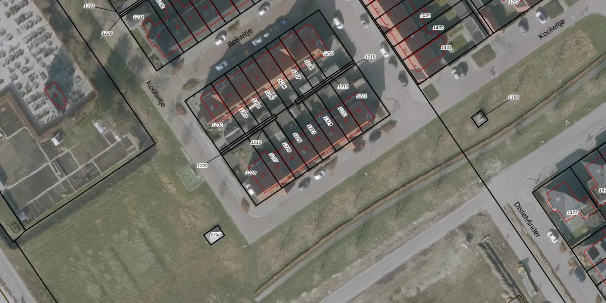 Gebruik de zoekbalk of klik op een perceel voor informatie over de adressen binnen dit perceel.