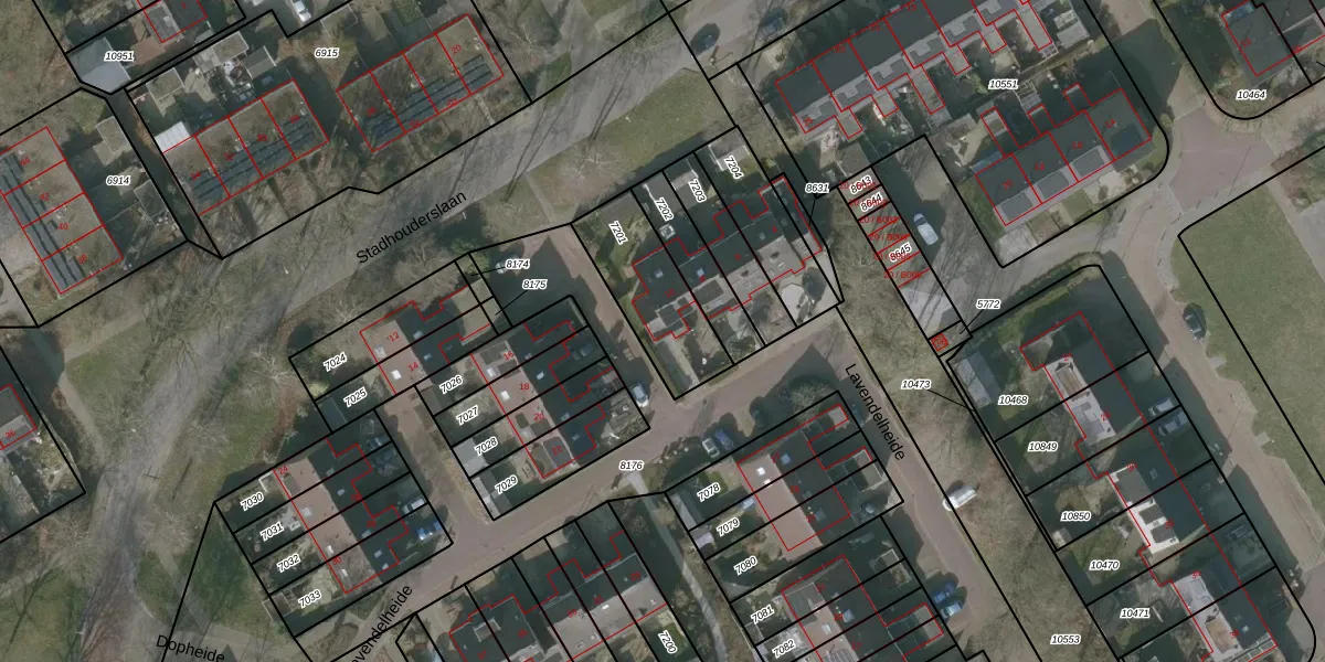 Lavendelheide 10 is gelegen op kadastraal perceel WVG00D7201. Deze kadastrale aanduiding is uniek en wordt gebruikt door het Kadaster om eigendomsrechten en andere zakelijke rechten vast te leggen. Het perceel maakt onderdeel uit van de kadastrale gemeente Wolvega.