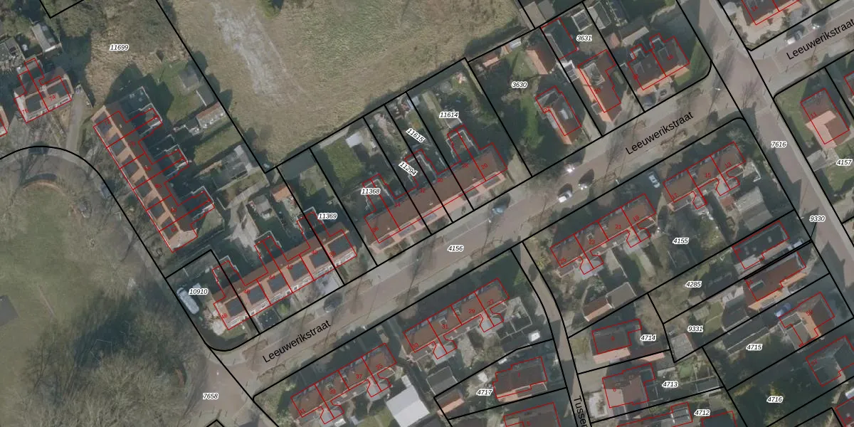 Gebruik de zoekbalk of klik op een perceel voor informatie over de adressen binnen dit perceel.