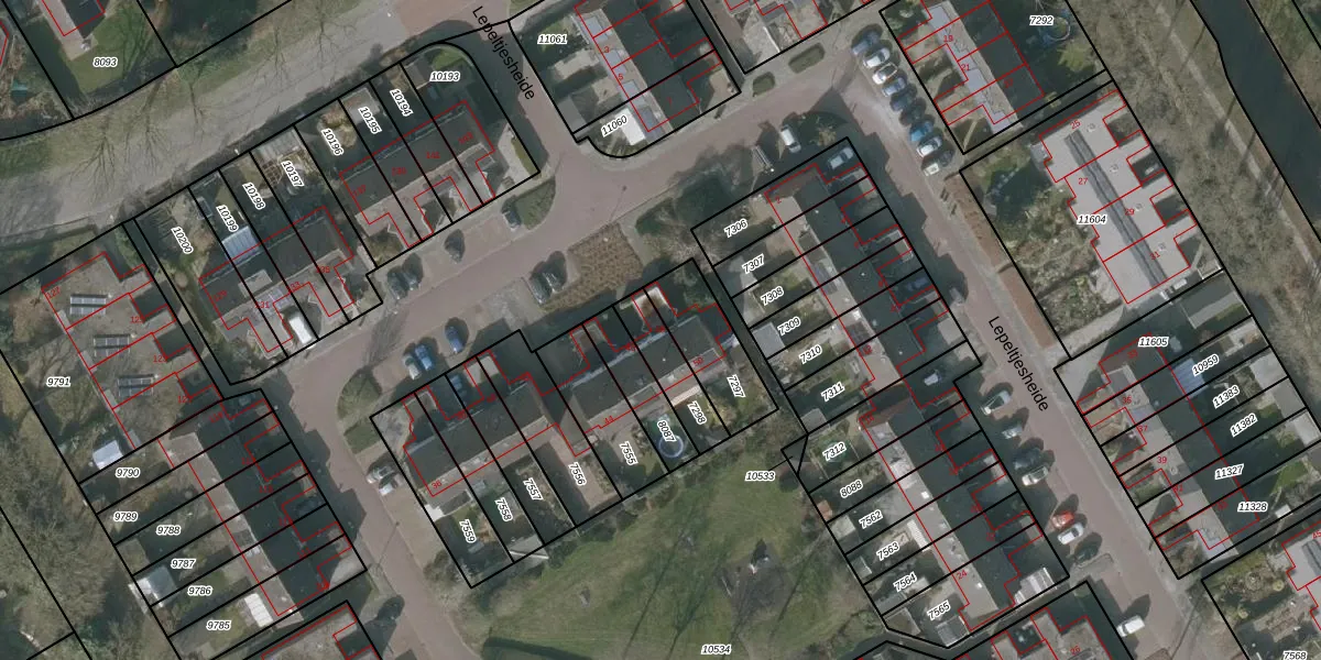 Gebruik de zoekbalk of klik op een perceel voor informatie over de adressen binnen dit perceel.