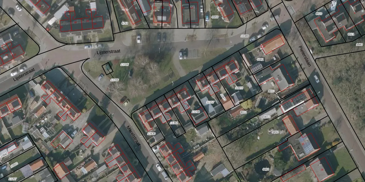 Gebruik de zoekbalk of klik op een perceel voor informatie over de adressen binnen dit perceel.
