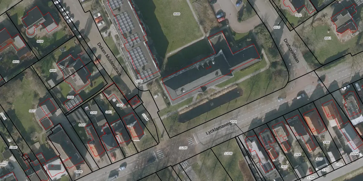Het perceel waarop Lycklamaweg 33 staat heeft een oppervlakte van 8165 m². Dit is een zeer groot perceel. De perceeloppervlakte wordt geregistreerd door het Kadaster. Gedetailleerde informatie over de maten van dit perceel kunt u vinden in het rapport Kadastrale kaart met maatvoering van Lycklamaweg 33.