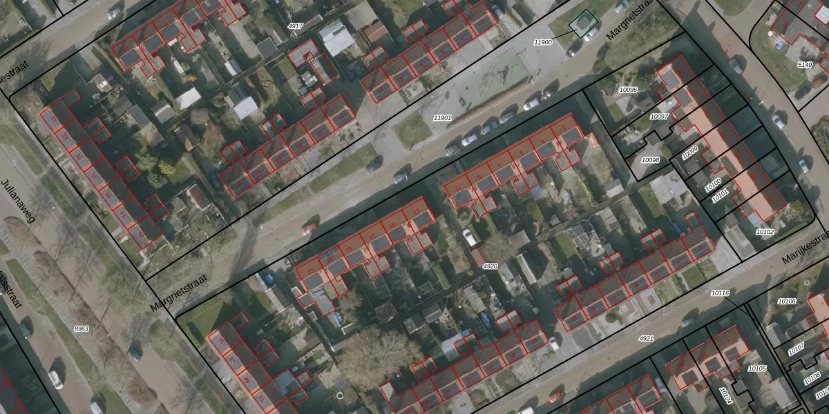 Het perceel waarop Margrietstraat 13 staat heeft een oppervlakte van 6390 m². Dit is een zeer groot perceel. De perceeloppervlakte wordt geregistreerd door het Kadaster. Gedetailleerde informatie over de maten van dit perceel kunt u vinden in het rapport Kadastrale kaart met maatvoering van Margrietstraat 13.