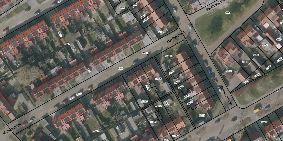 Het perceel waarop Marijkestraat 1-A staat heeft een oppervlakte van 176 m². Dit is een middelgroot perceel. De perceeloppervlakte wordt geregistreerd door het Kadaster. Gedetailleerde informatie over de maten van dit perceel kunt u vinden in het rapport Kadastrale kaart met maatvoering van Marijkestraat 1-A.