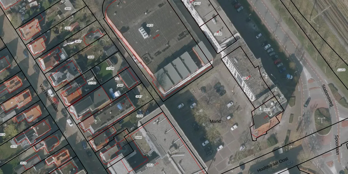 Het perceel waarop Markt 15 staat heeft een oppervlakte van 2423 m². Dit is een zeer groot perceel. De perceeloppervlakte wordt geregistreerd door het Kadaster. Gedetailleerde informatie over de maten van dit perceel kunt u vinden in het rapport Kadastrale kaart met maatvoering van Markt 15.