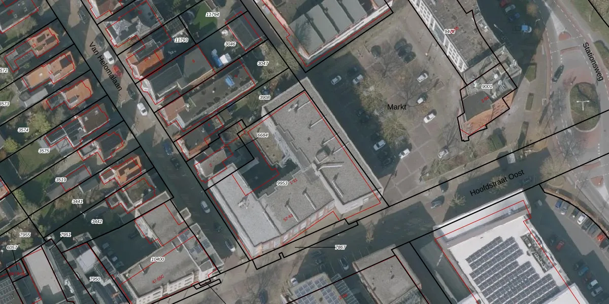 Het perceel waarop Markt 9-A staat heeft een oppervlakte van 1782 m². Dit is een zeer groot perceel. De perceeloppervlakte wordt geregistreerd door het Kadaster. Gedetailleerde informatie over de maten van dit perceel kunt u vinden in het rapport Kadastrale kaart met maatvoering van Markt 9-A.
