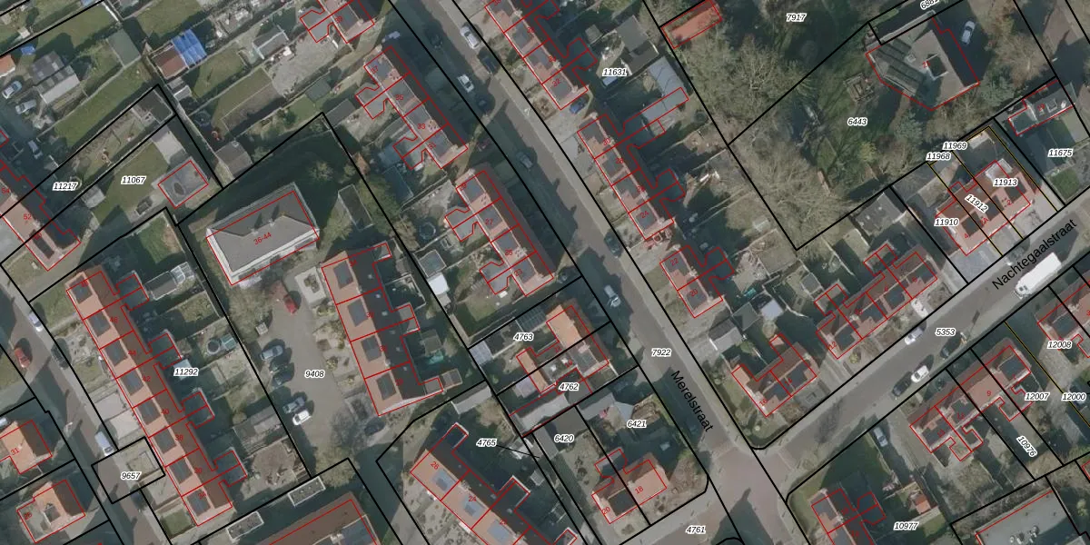 Het perceel waarop Merelstraat 23 staat heeft een oppervlakte van 8360 m². Dit is een zeer groot perceel. De perceeloppervlakte wordt geregistreerd door het Kadaster. Gedetailleerde informatie over de maten van dit perceel kunt u vinden in het rapport Kadastrale kaart met maatvoering van Merelstraat 23.
