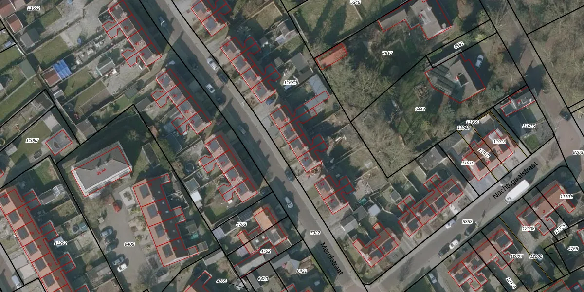 Het perceel waarop Merelstraat 26 staat heeft een oppervlakte van 4842 m². Dit is een zeer groot perceel. De perceeloppervlakte wordt geregistreerd door het Kadaster. Gedetailleerde informatie over de maten van dit perceel kunt u vinden in het rapport Kadastrale kaart met maatvoering van Merelstraat 26.