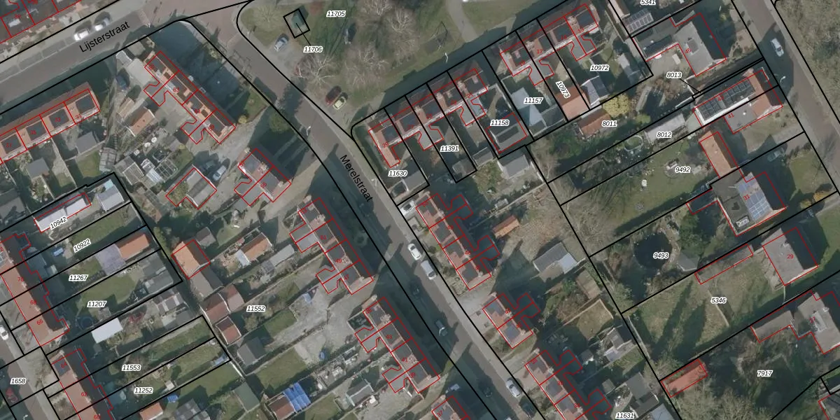 Het perceel waarop Merelstraat 50 staat heeft een oppervlakte van 4842 m². Dit is een zeer groot perceel. De perceeloppervlakte wordt geregistreerd door het Kadaster. Gedetailleerde informatie over de maten van dit perceel kunt u vinden in het rapport Kadastrale kaart met maatvoering van Merelstraat 50.