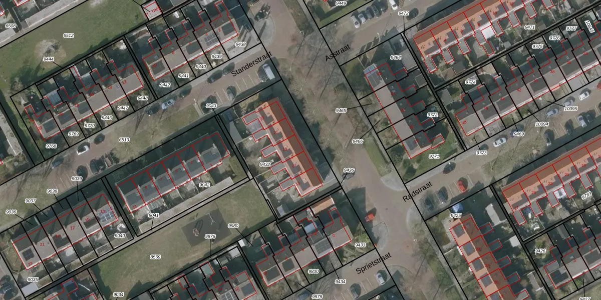 Het perceel waarop Meulestraat 19 staat heeft een oppervlakte van 975 m². Dit is een groot perceel. De perceeloppervlakte wordt geregistreerd door het Kadaster. Gedetailleerde informatie over de maten van dit perceel kunt u vinden in het rapport Kadastrale kaart met maatvoering van Meulestraat 19.