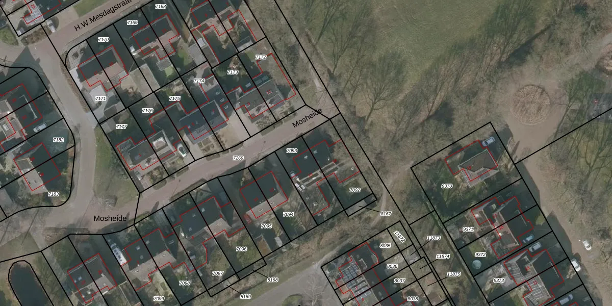 Het perceel waarop Mosheide 14 staat heeft een oppervlakte van 283 m². Dit is een middelgroot perceel. De perceeloppervlakte wordt geregistreerd door het Kadaster. Gedetailleerde informatie over de maten van dit perceel kunt u vinden in het rapport Kadastrale kaart met maatvoering van Mosheide 14.