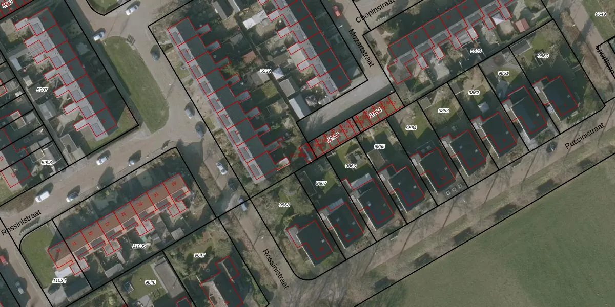 Het perceel waarop Mozartstraat 22-B001 staat heeft een oppervlakte van 3056 m². Dit is een zeer groot perceel. De perceeloppervlakte wordt geregistreerd door het Kadaster. Gedetailleerde informatie over de maten van dit perceel kunt u vinden in het rapport Kadastrale kaart met maatvoering van Mozartstraat 22-B001.