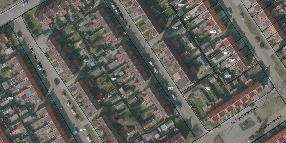 Mr.Groen van Prinstererstraat 16 is gelegen op kadastraal perceel WVG00D5115. Deze kadastrale aanduiding is uniek en wordt gebruikt door het Kadaster om eigendomsrechten en andere zakelijke rechten vast te leggen. Het perceel maakt onderdeel uit van de kadastrale gemeente Wolvega.