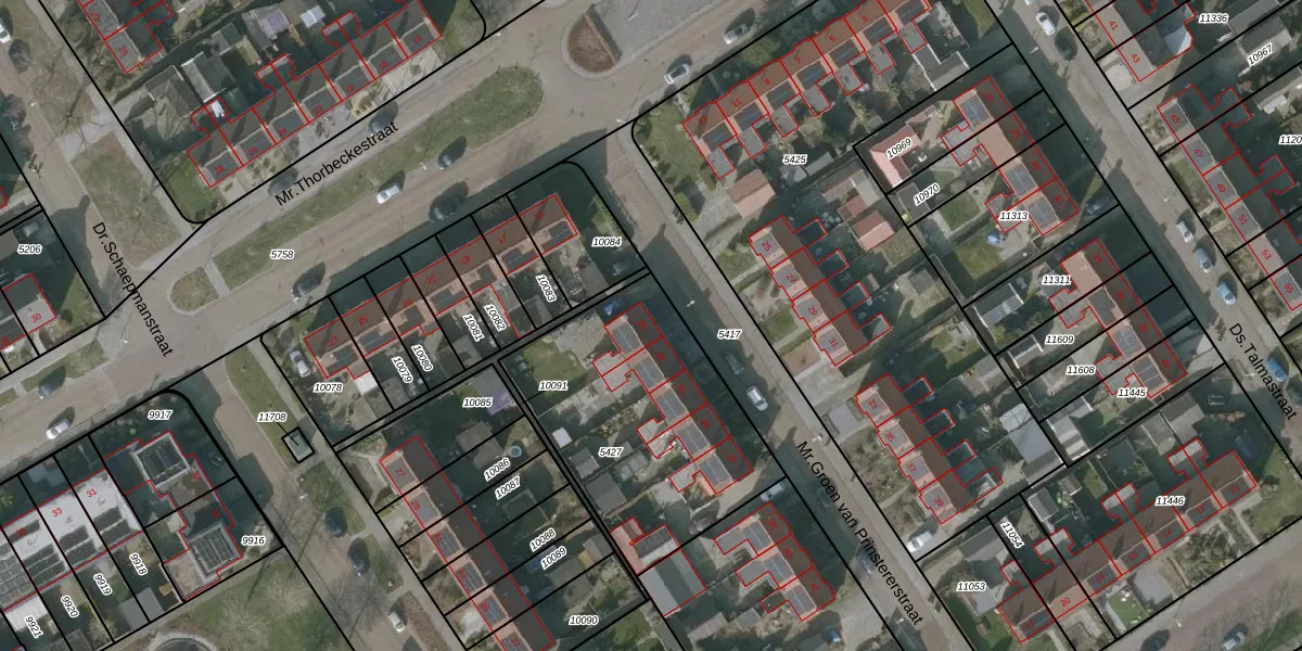 Het perceel waarop Mr.Groen van Prinstererstraat 28 staat heeft een oppervlakte van 1060 m². Dit is een zeer groot perceel. De perceeloppervlakte wordt geregistreerd door het Kadaster. Gedetailleerde informatie over de maten van dit perceel kunt u vinden in het rapport Kadastrale kaart met maatvoering van Mr.Groen van Prinstererstraat 28.