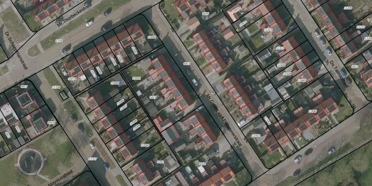 Het perceel waarop Mr.Groen van Prinstererstraat 34 staat heeft een oppervlakte van 1060 m². Dit is een zeer groot perceel. De perceeloppervlakte wordt geregistreerd door het Kadaster. Gedetailleerde informatie over de maten van dit perceel kunt u vinden in het rapport Kadastrale kaart met maatvoering van Mr.Groen van Prinstererstraat 34.